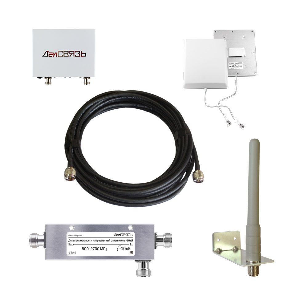 Набор элементов, входящих в состав решения для квартиры, стандартен. Он включает в себя репитер, антенны, набор необходимых разъемов и кабелей. Для квартир площадью до 300-500м в комплект входят также делители мощности. Для выбора типа и модели репитера необходимо измерить текущий уровень сигнала – чем он ниже, тем более мощный репитер потребуется.